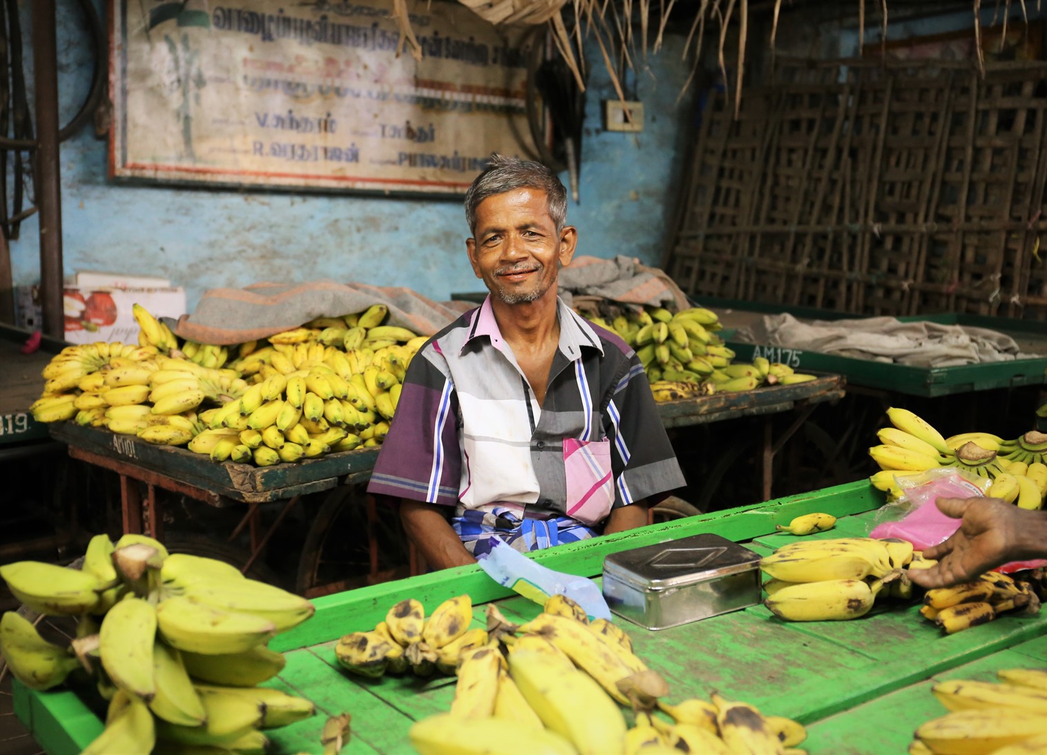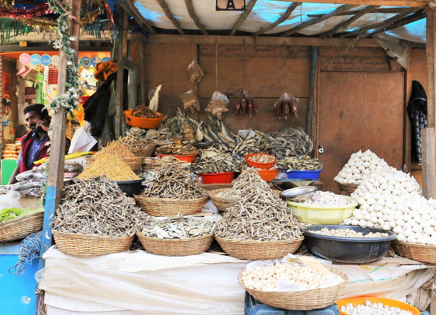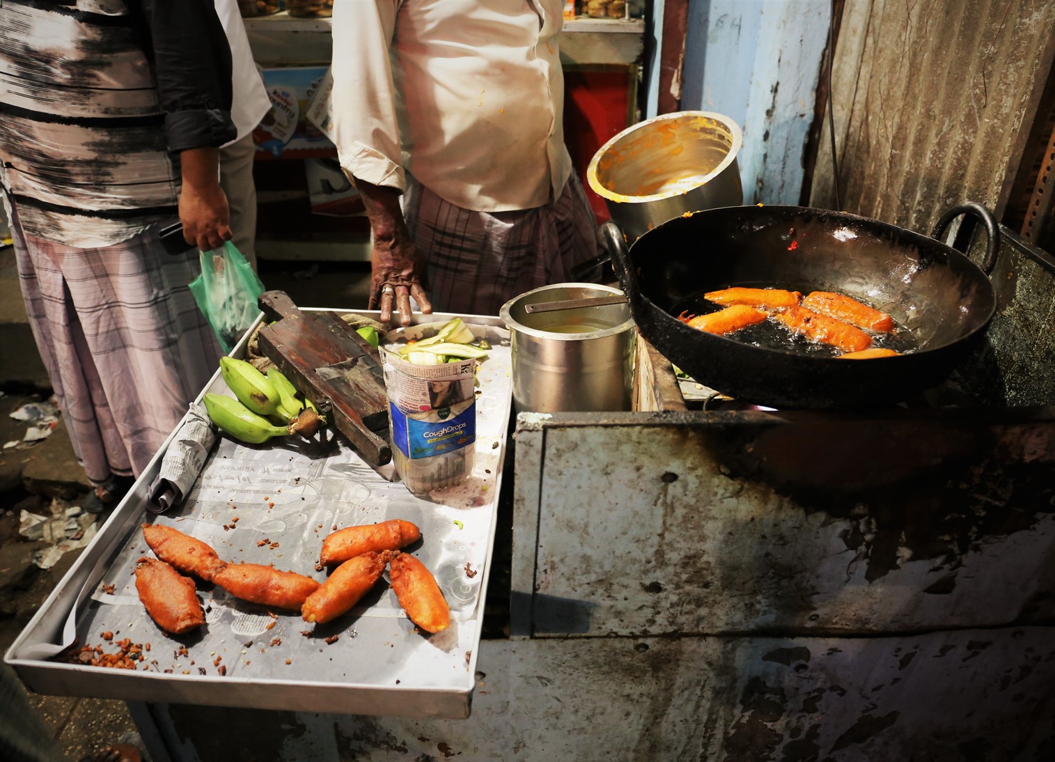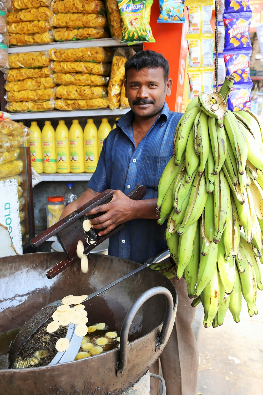 kumilyの町中には、バナナチップ屋さんが多く並んでいる。