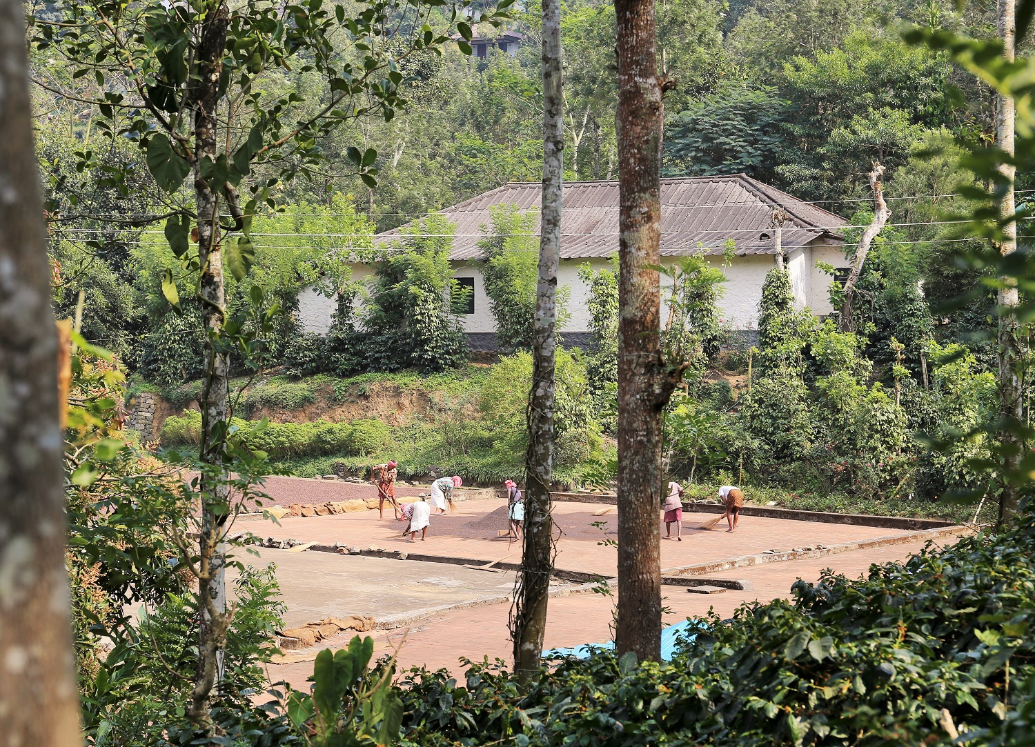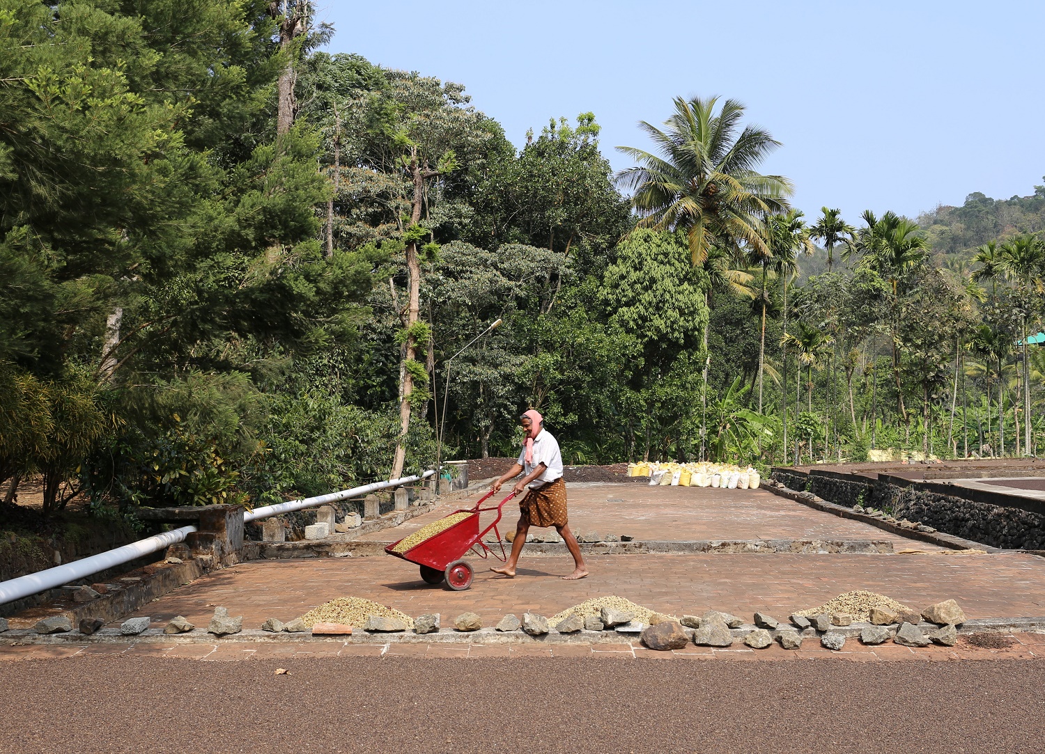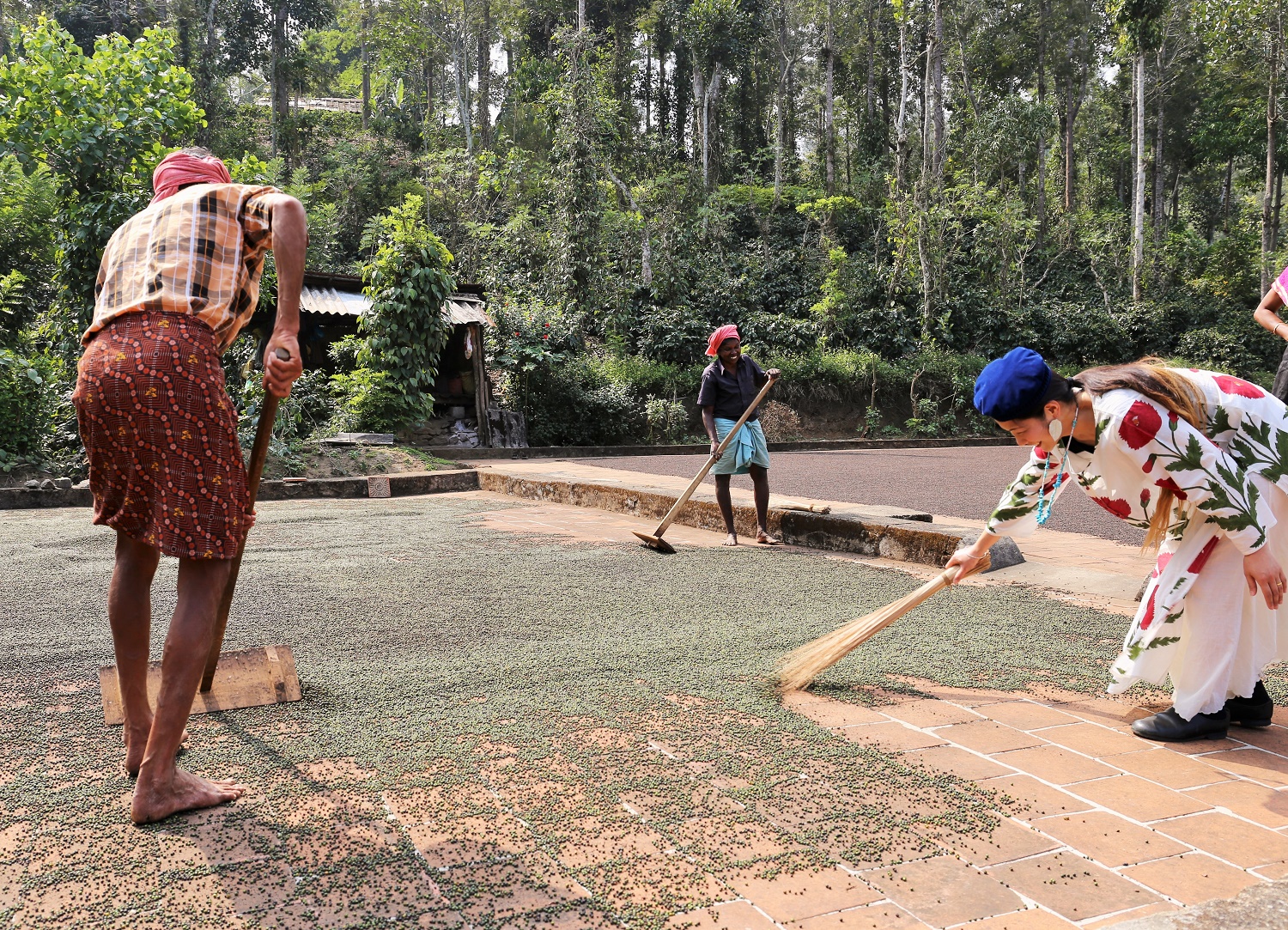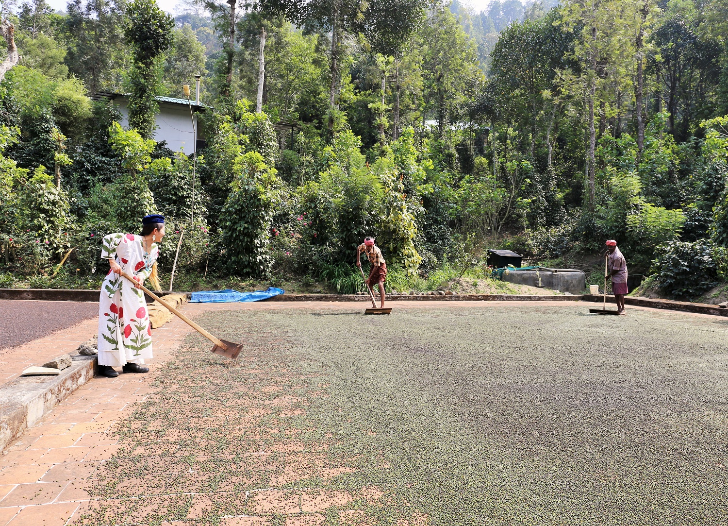 こちらは、ペッパーの天日干し作業。