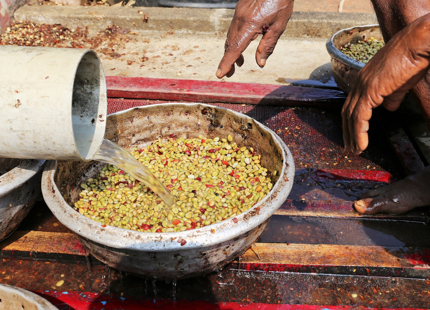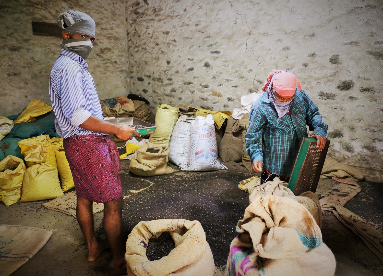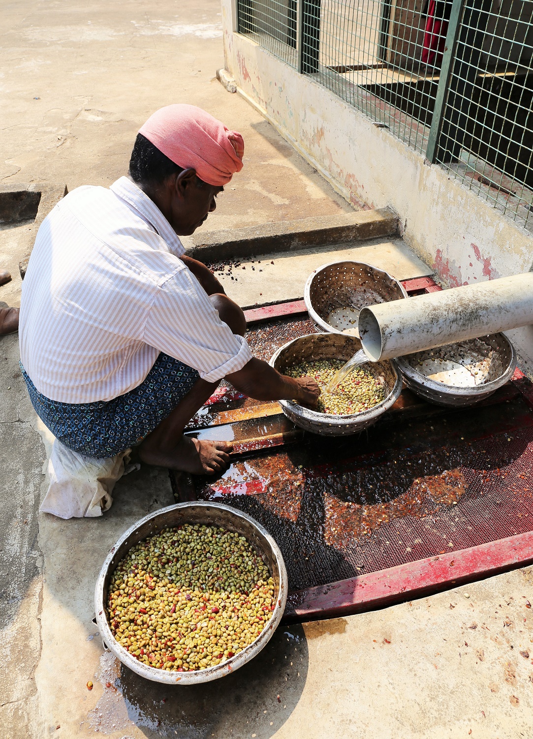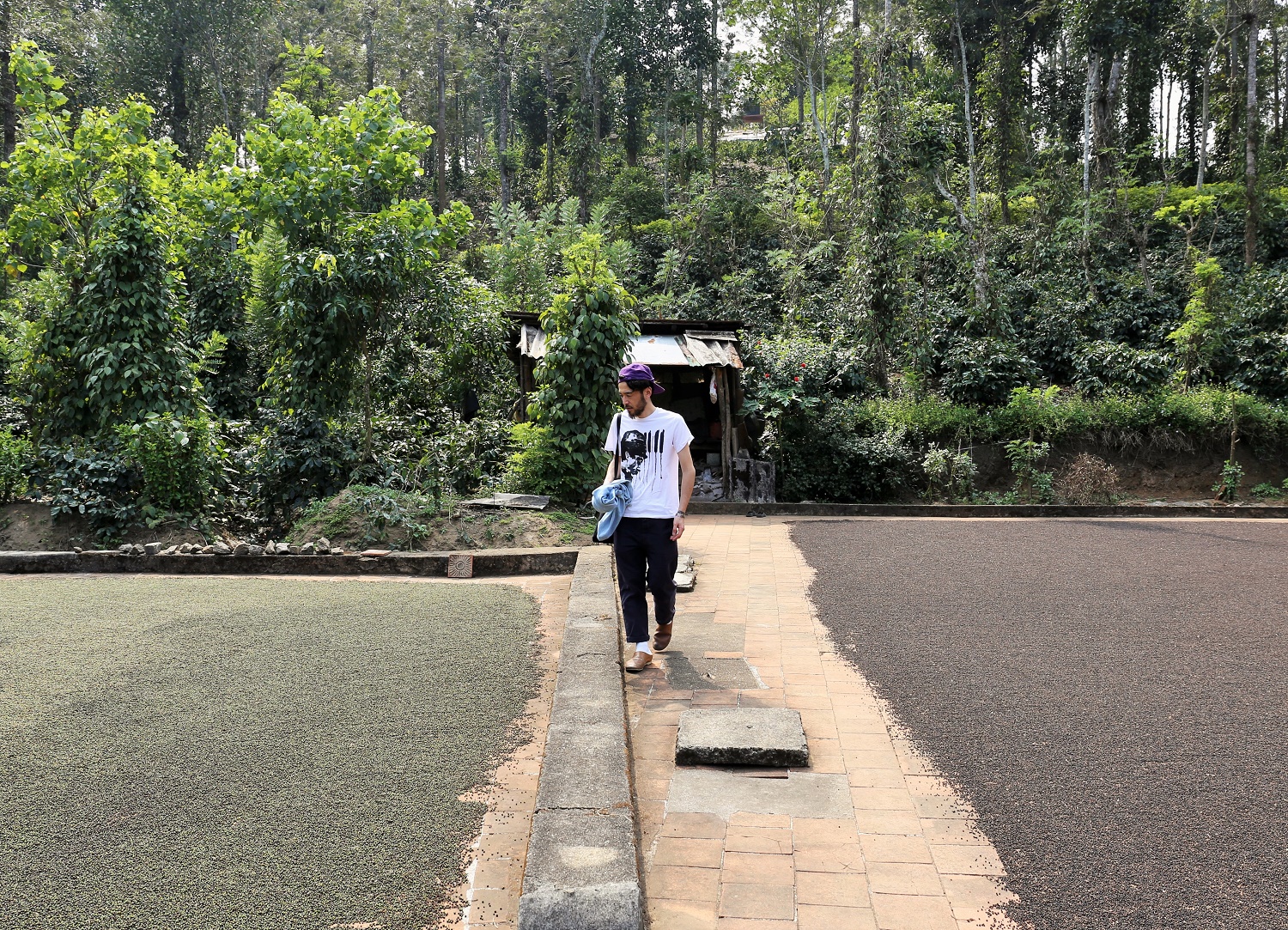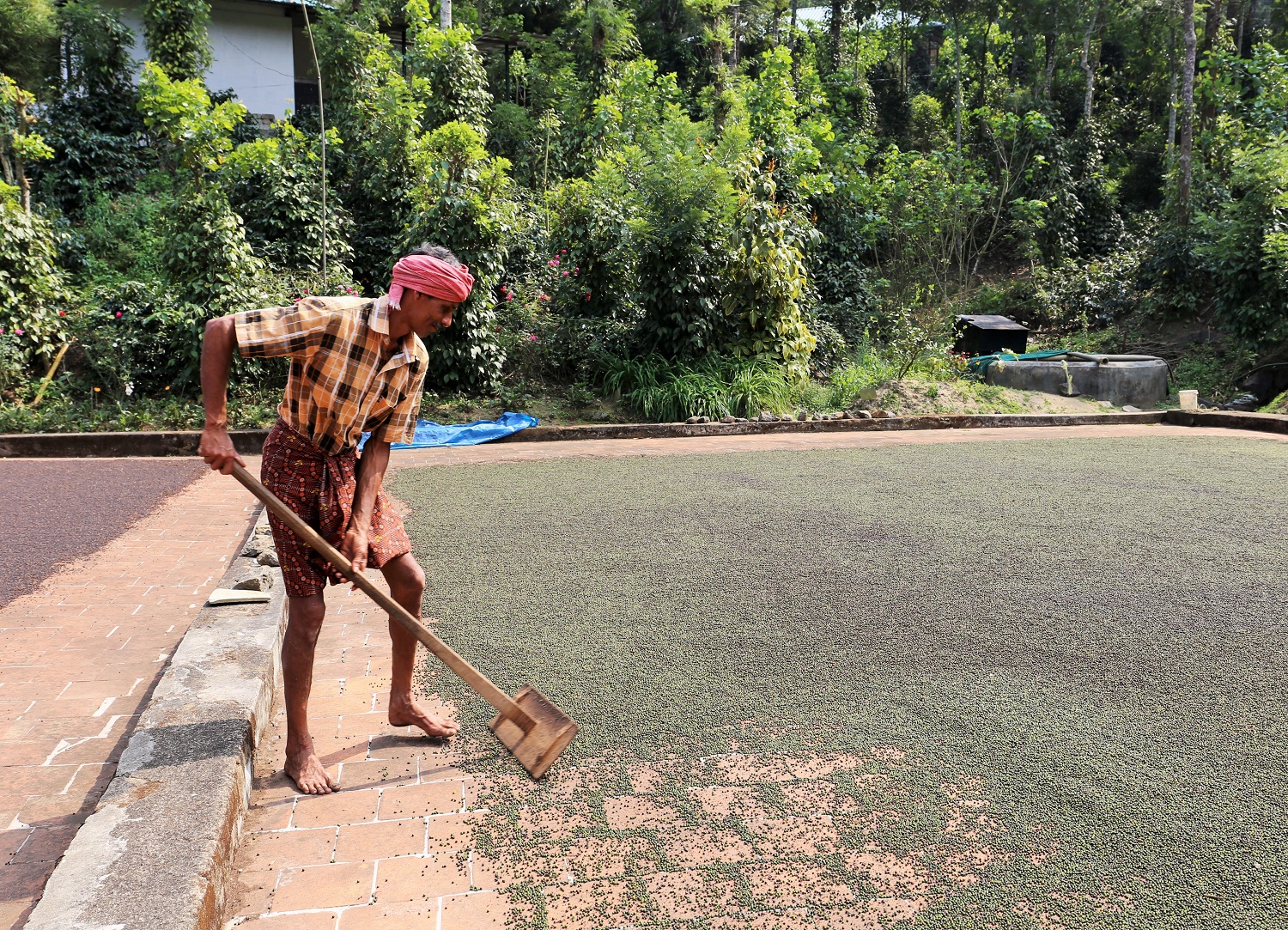 こちらは、ペッパーの天日干し作業。