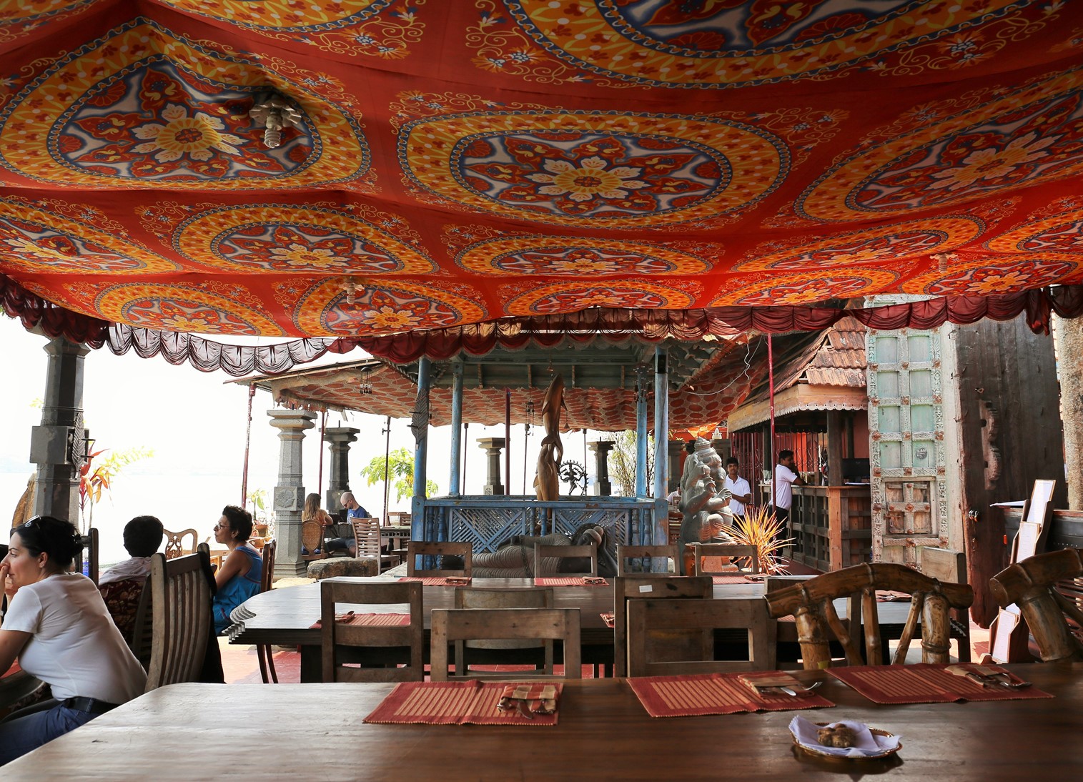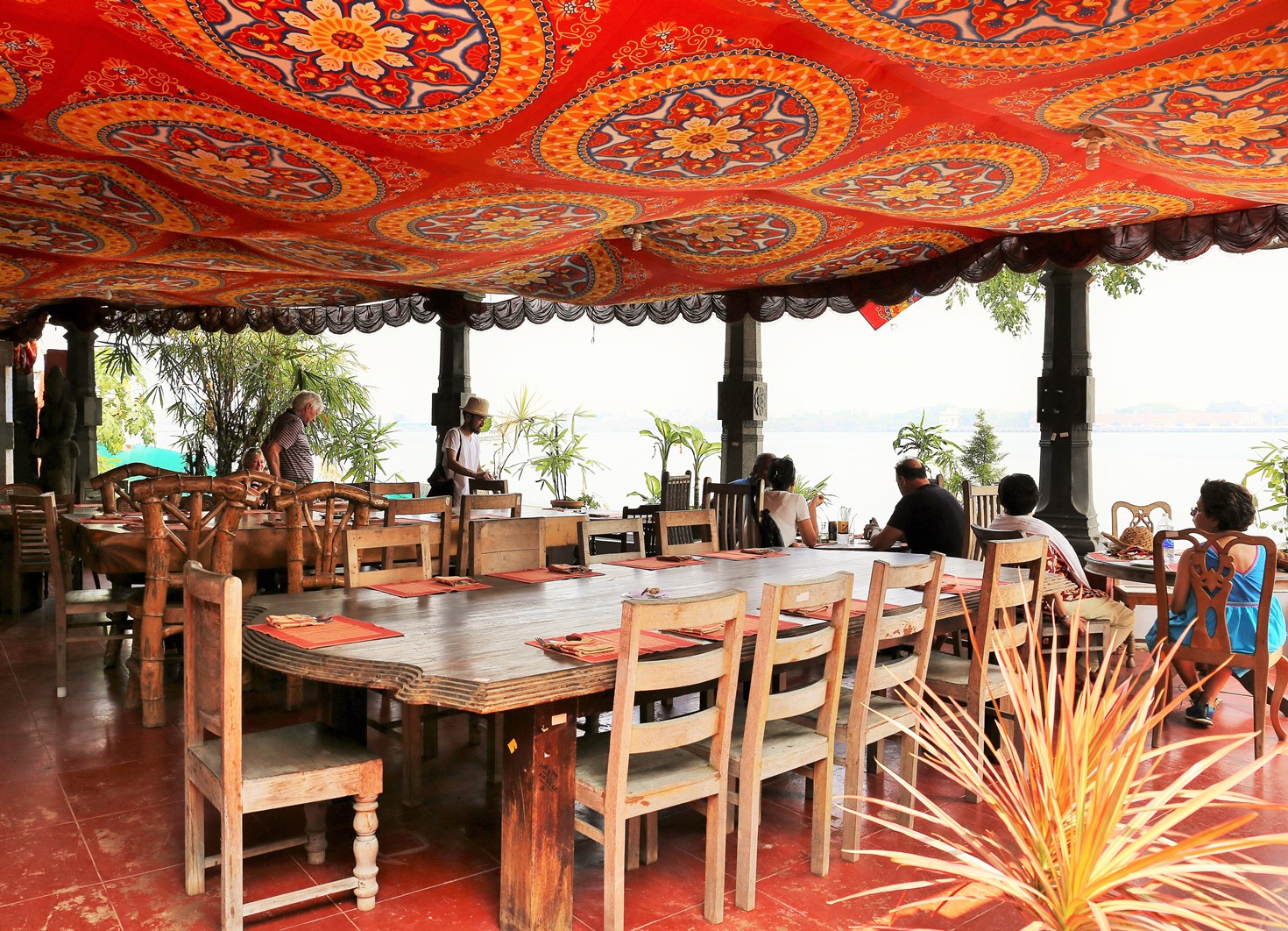 川岸の船の発着を見ながらの食事。