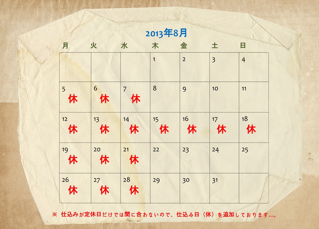 8月は通常通り営業。