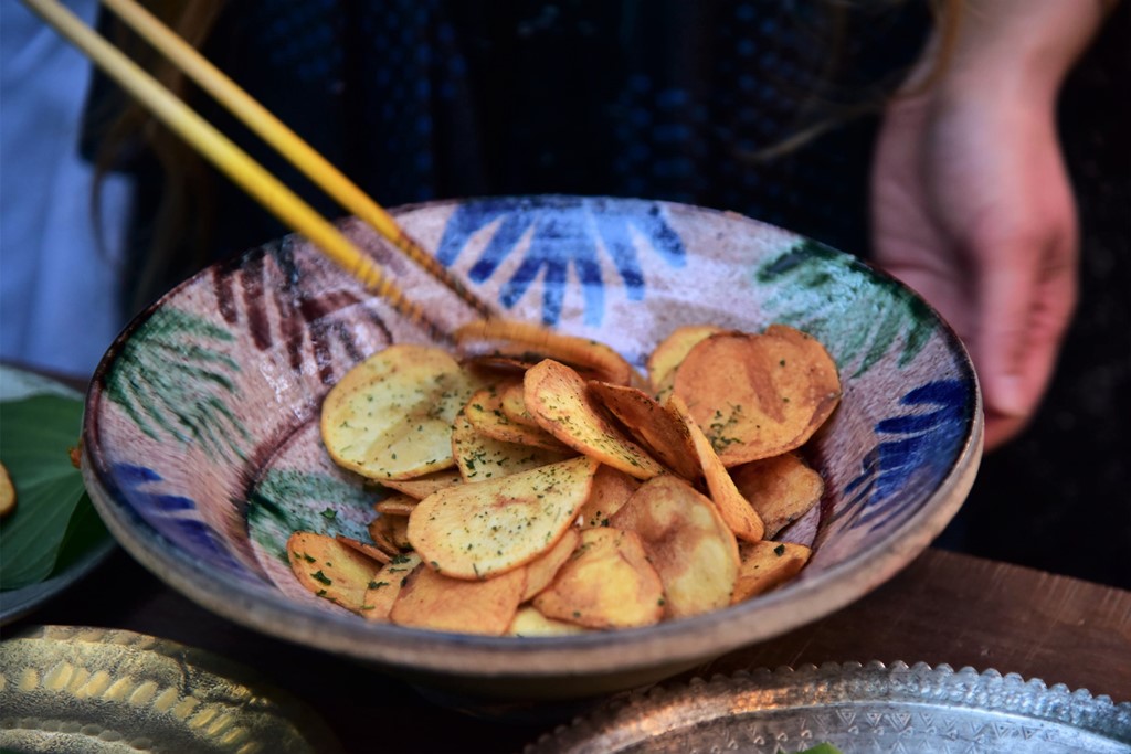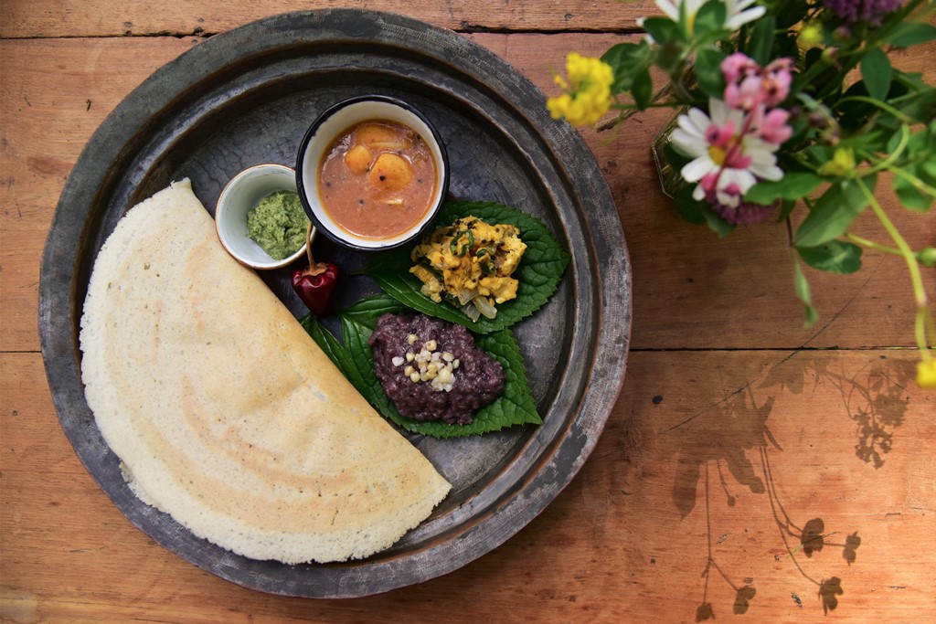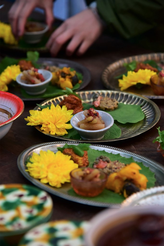 インド料理を盛り付ける。