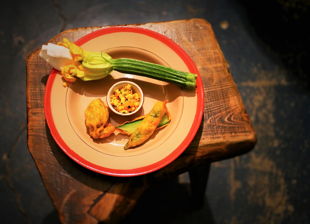 花ズッキーニの、花に詰めて、