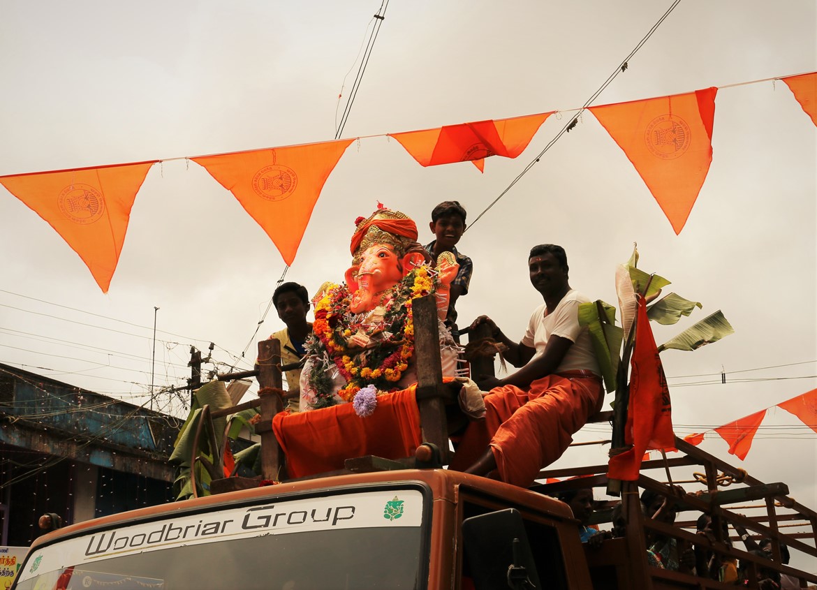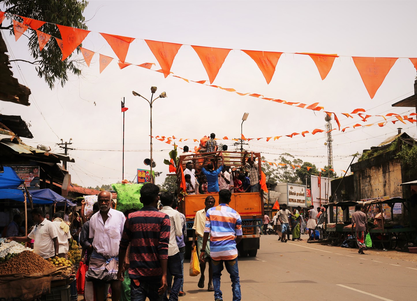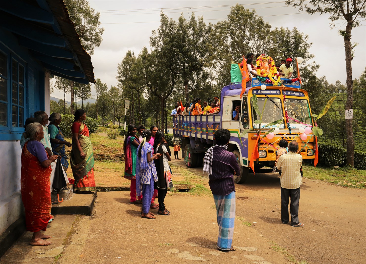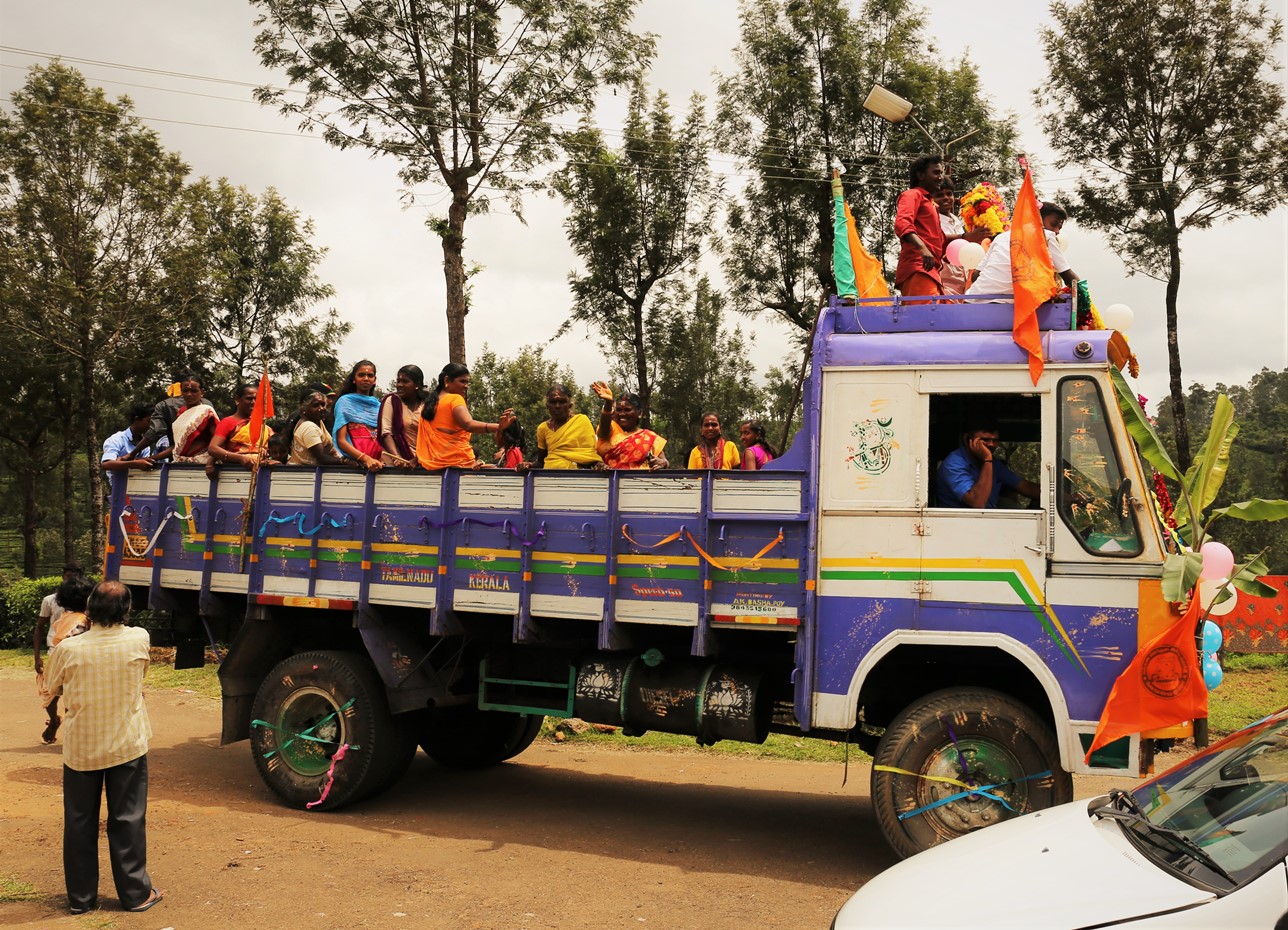 若者を中心に手をたたき音楽を奏でお祝いをしていた。