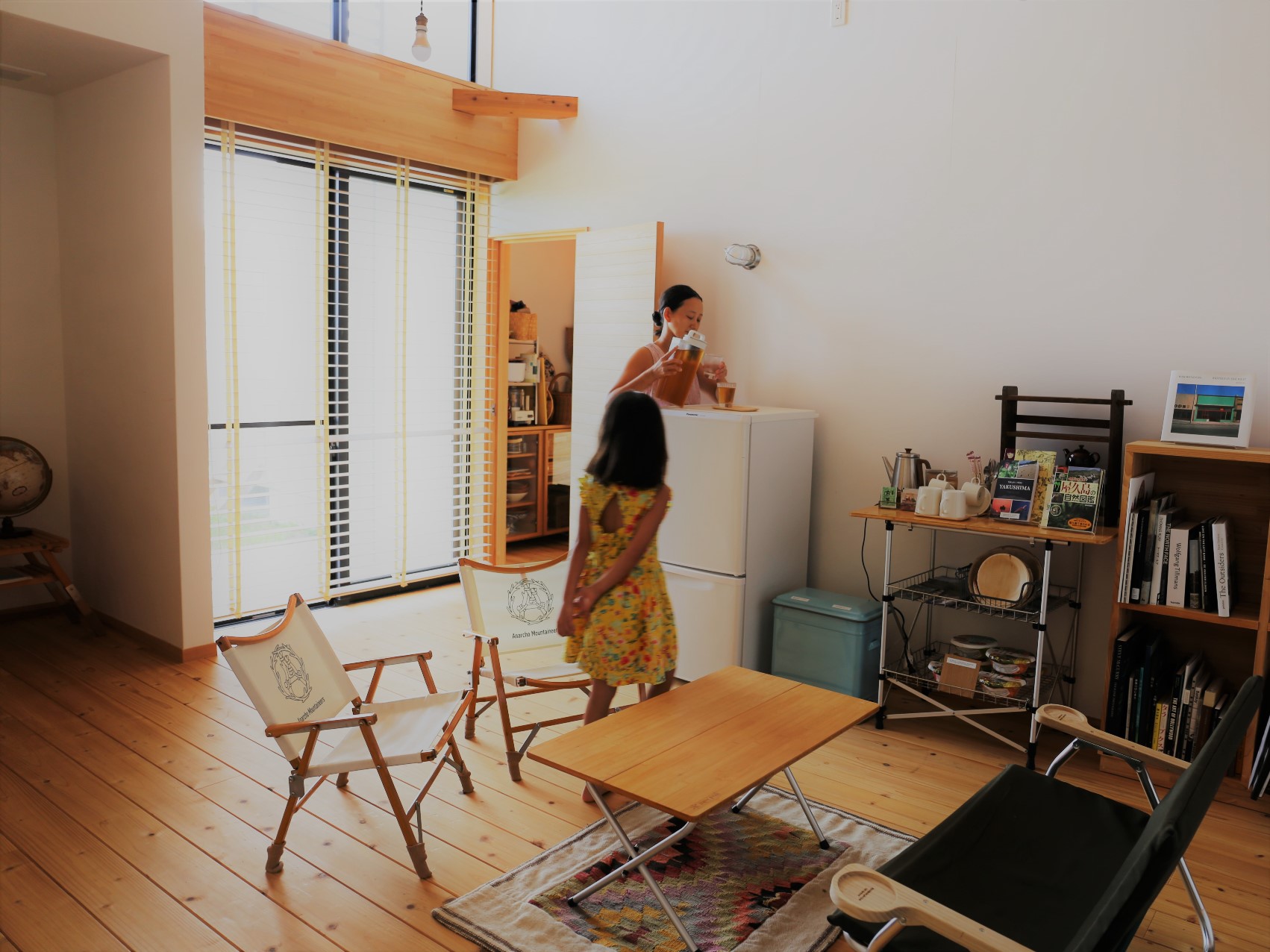 アンティーク家具や民芸、食器、調理道具もすべてキャンプに持ち込み、