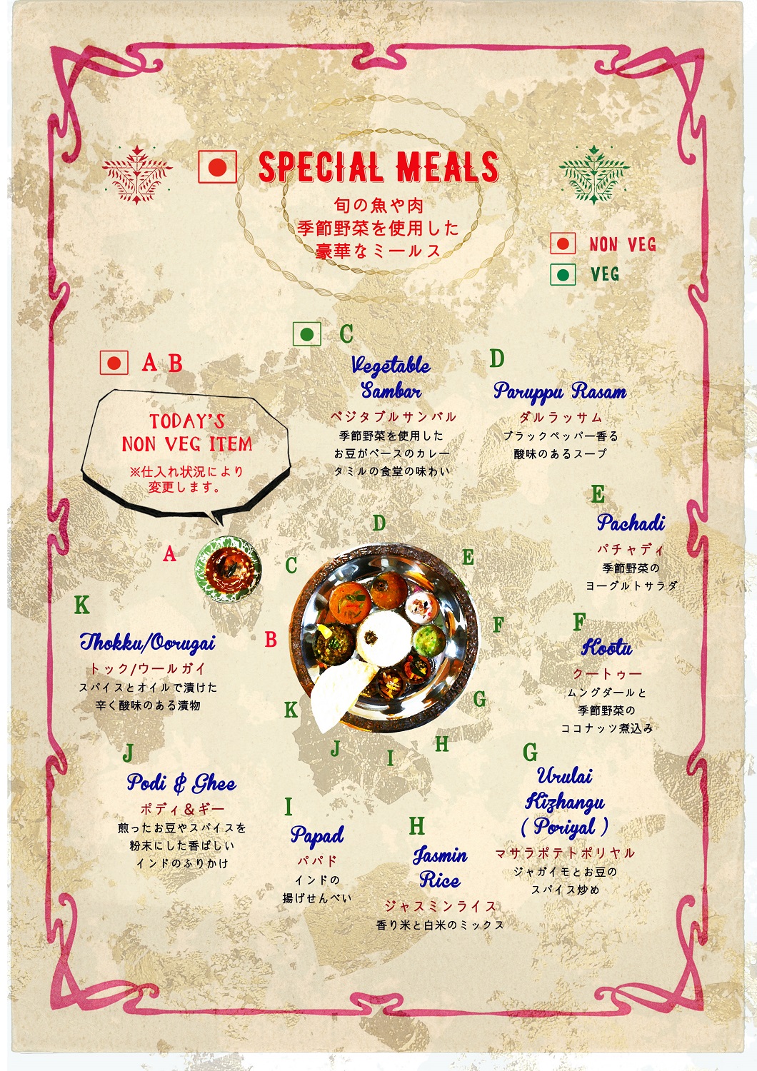 日替わりの食材をお客様ひとりひとりに