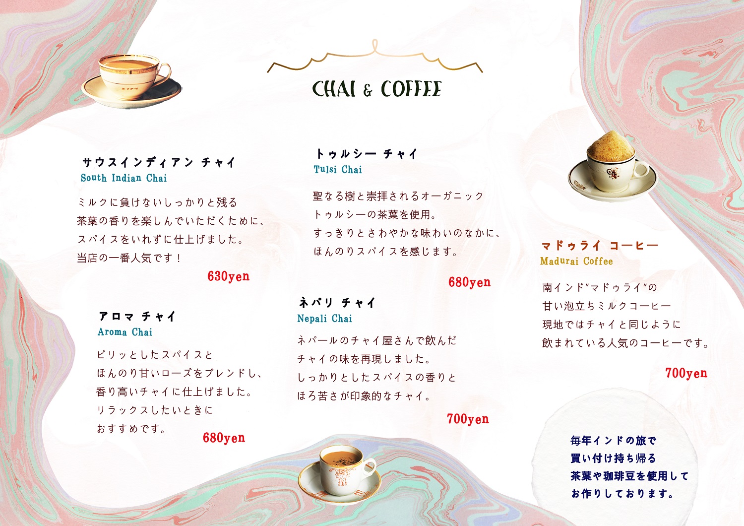 その日その日にお作りできるチャイを、