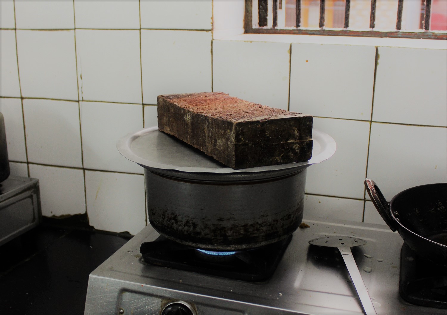 蓋のなかにも石があり、2つの石で蒸す手法。