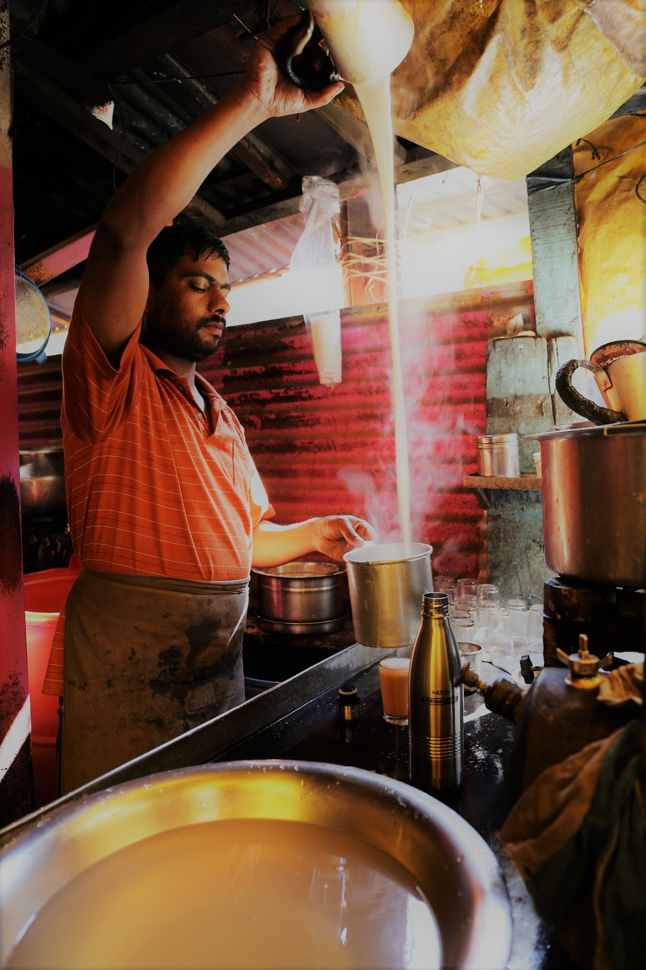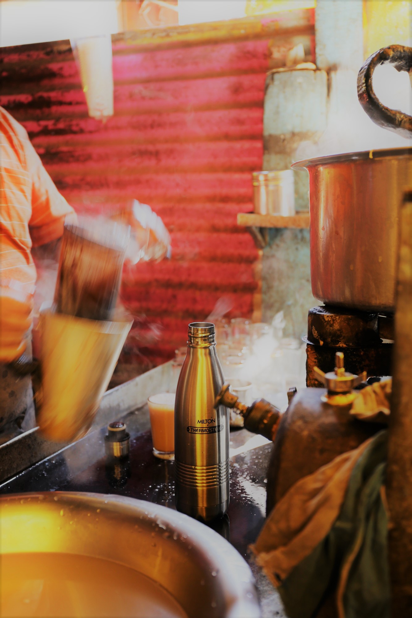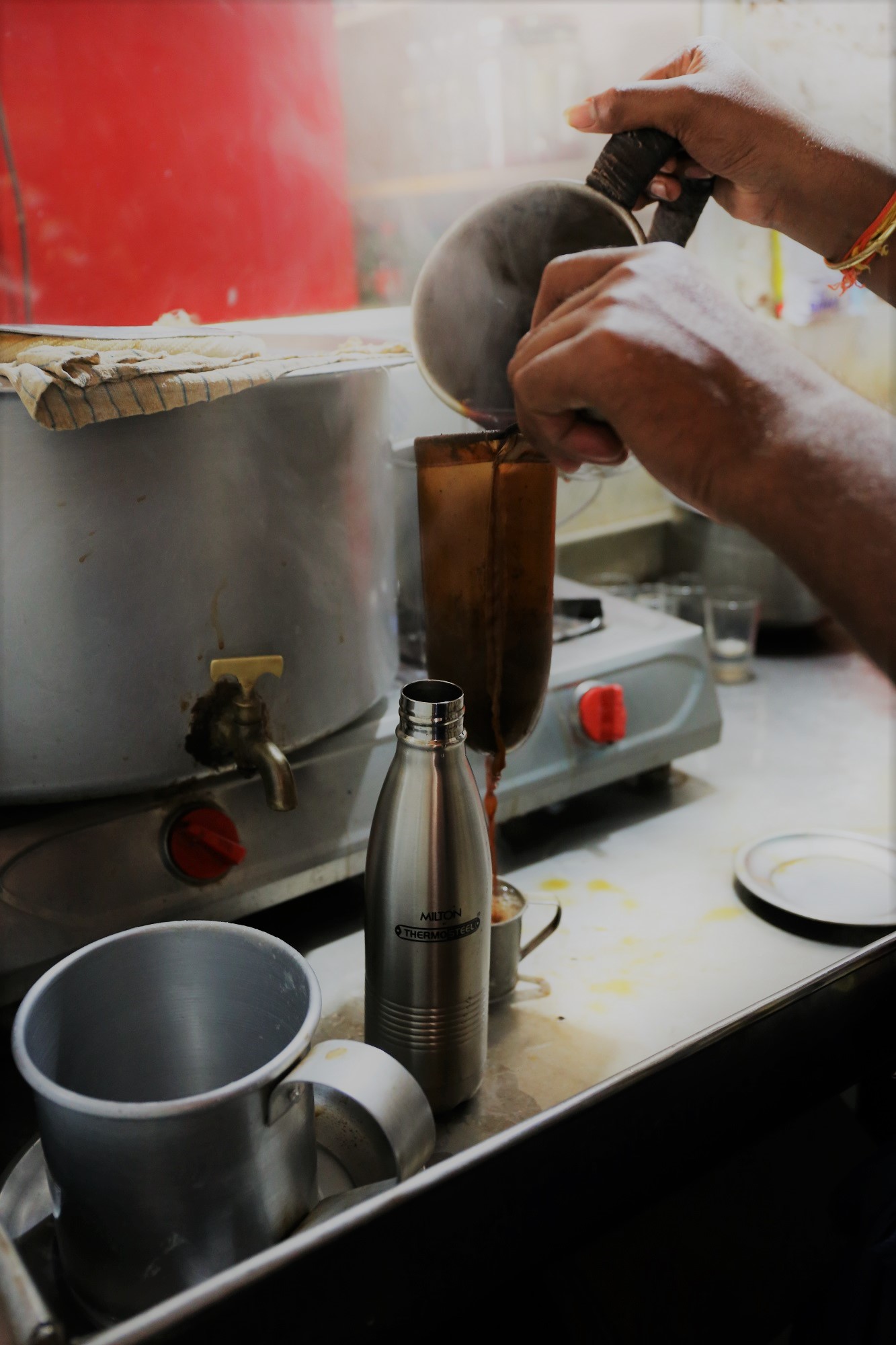 チャイ屋で熱々のチャイを
