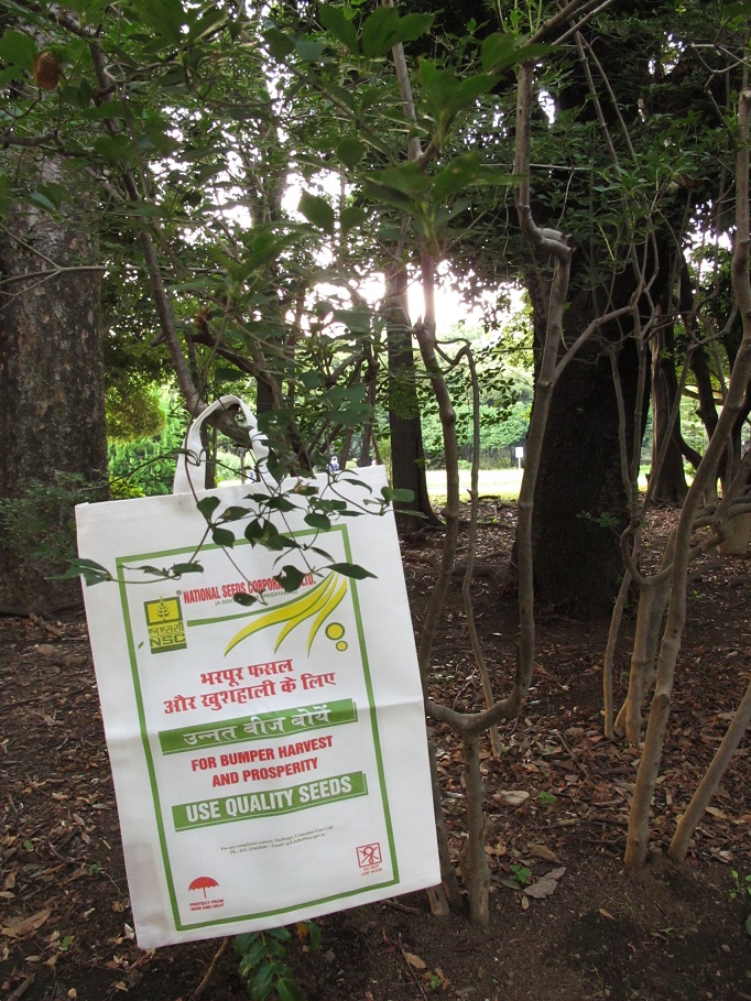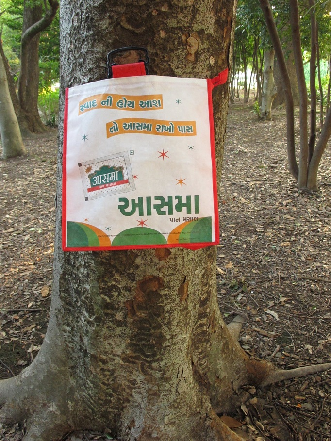 インドの紅茶ブランドやスパイスなどがプリントされたバッグ。
