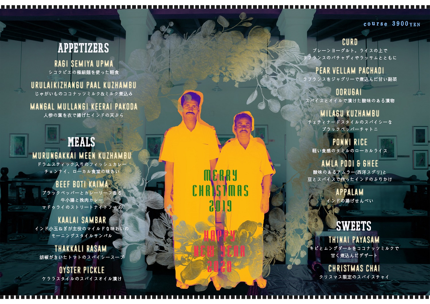 前菜、ミールス、デザートのメニューの構成のなかで、