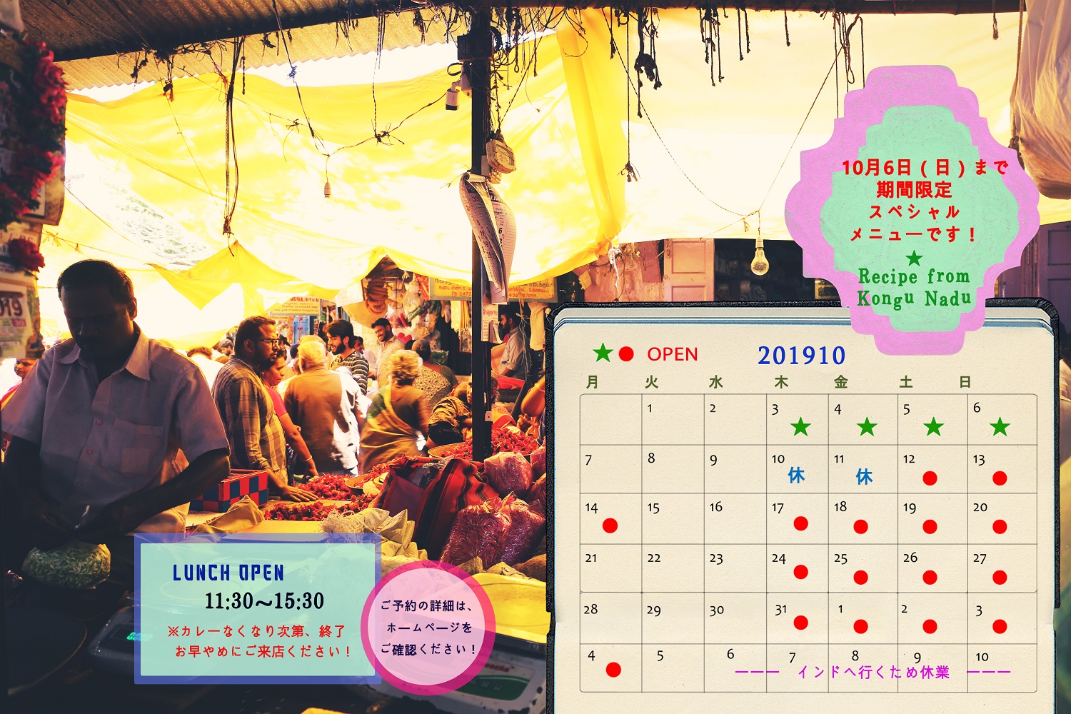 お休みやメニューやいろいろなお知らせ