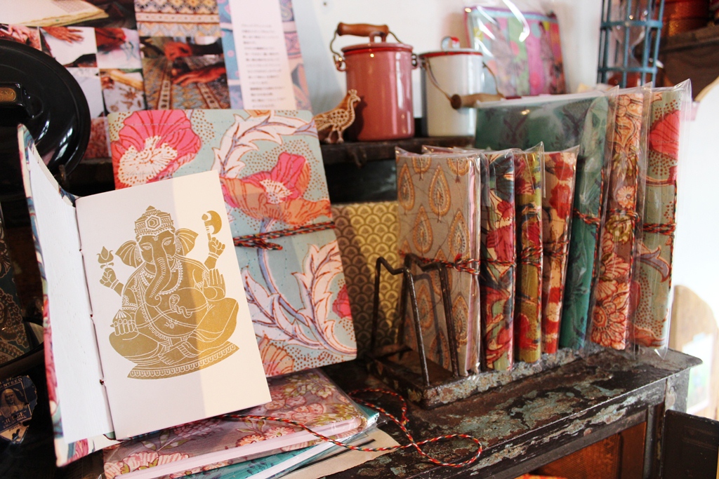 ブロックプリントで染められた布を表紙にした手作りのノート。