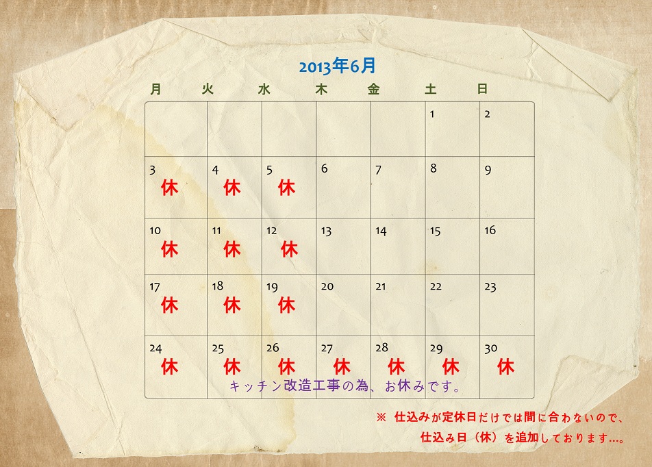 今月も定休日(火・水)に加え、