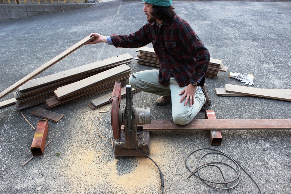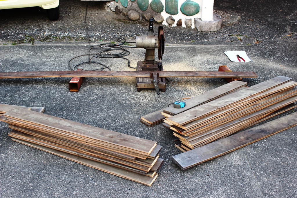 今回は、床にひく古い木をもらいにやってきました。