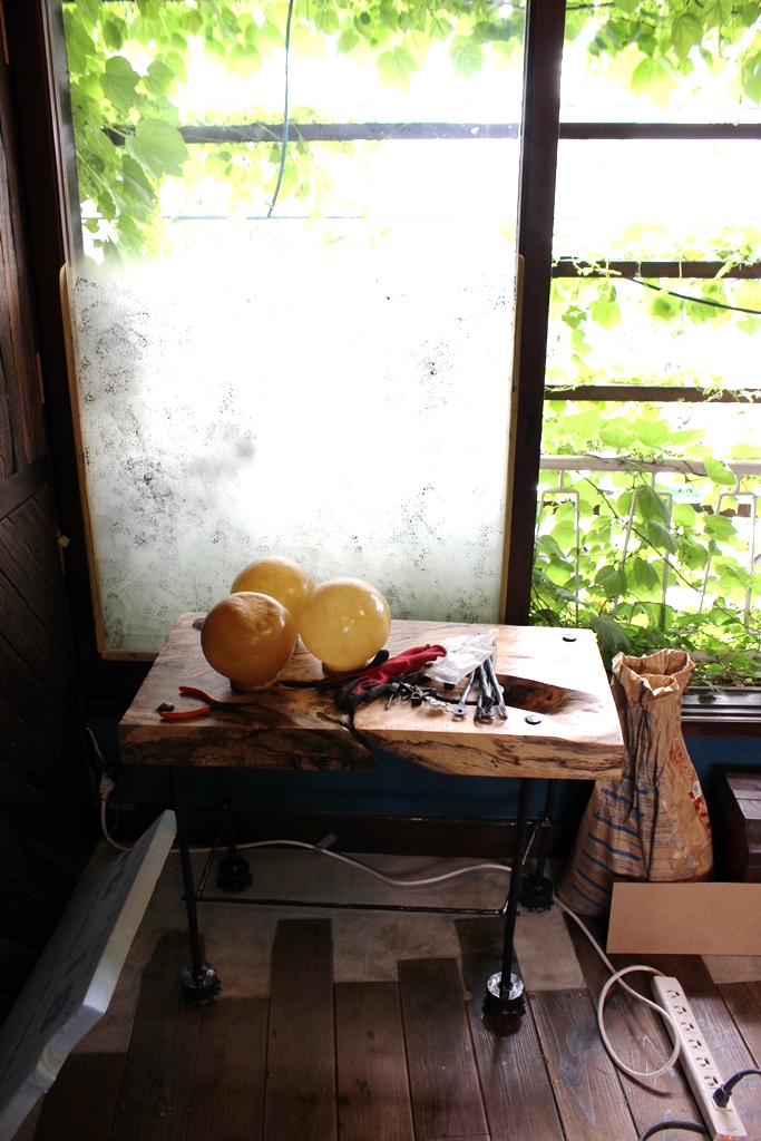 インドネシアの木をテーブルに加工。