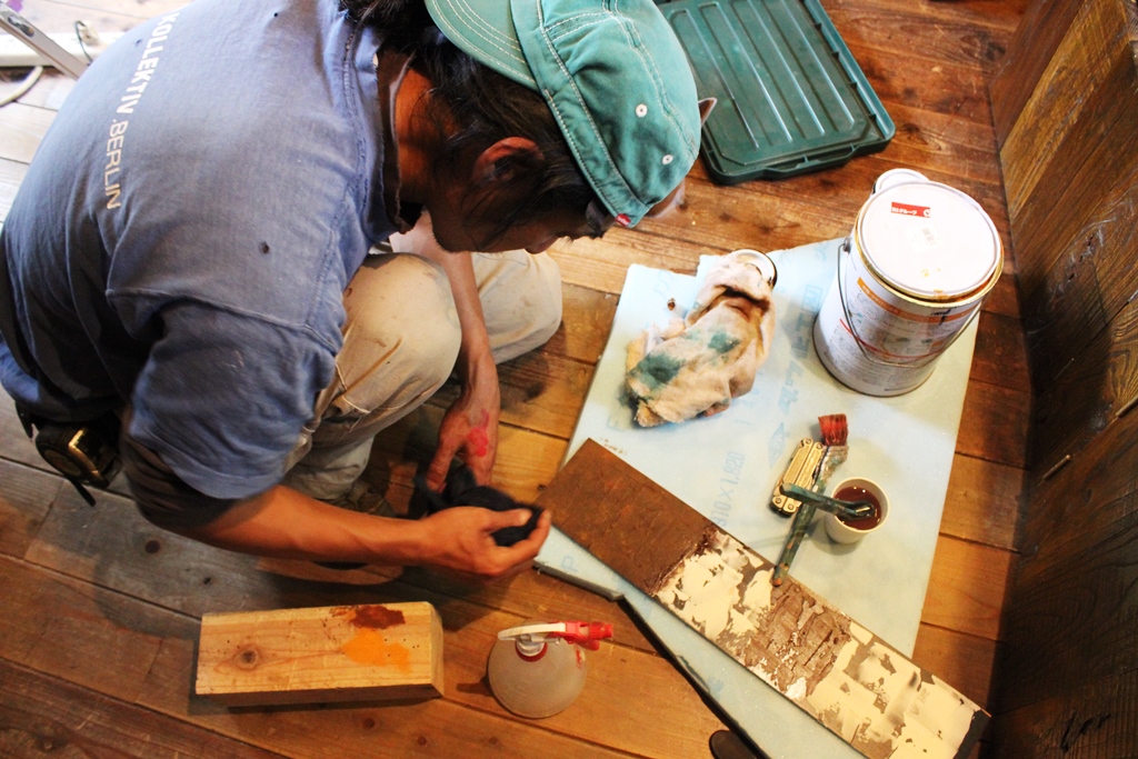 ペンキの塗り方のレクチャーも受けました。