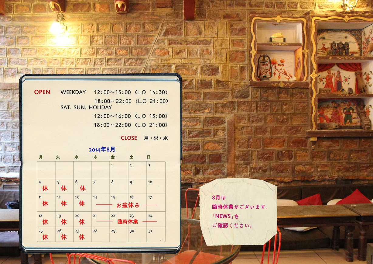 8月少し長くお休みをいただきます。