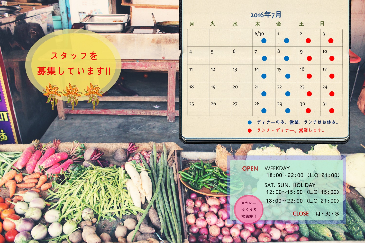 7月は、木・金、の平日は、ディナー営業のみとなります。