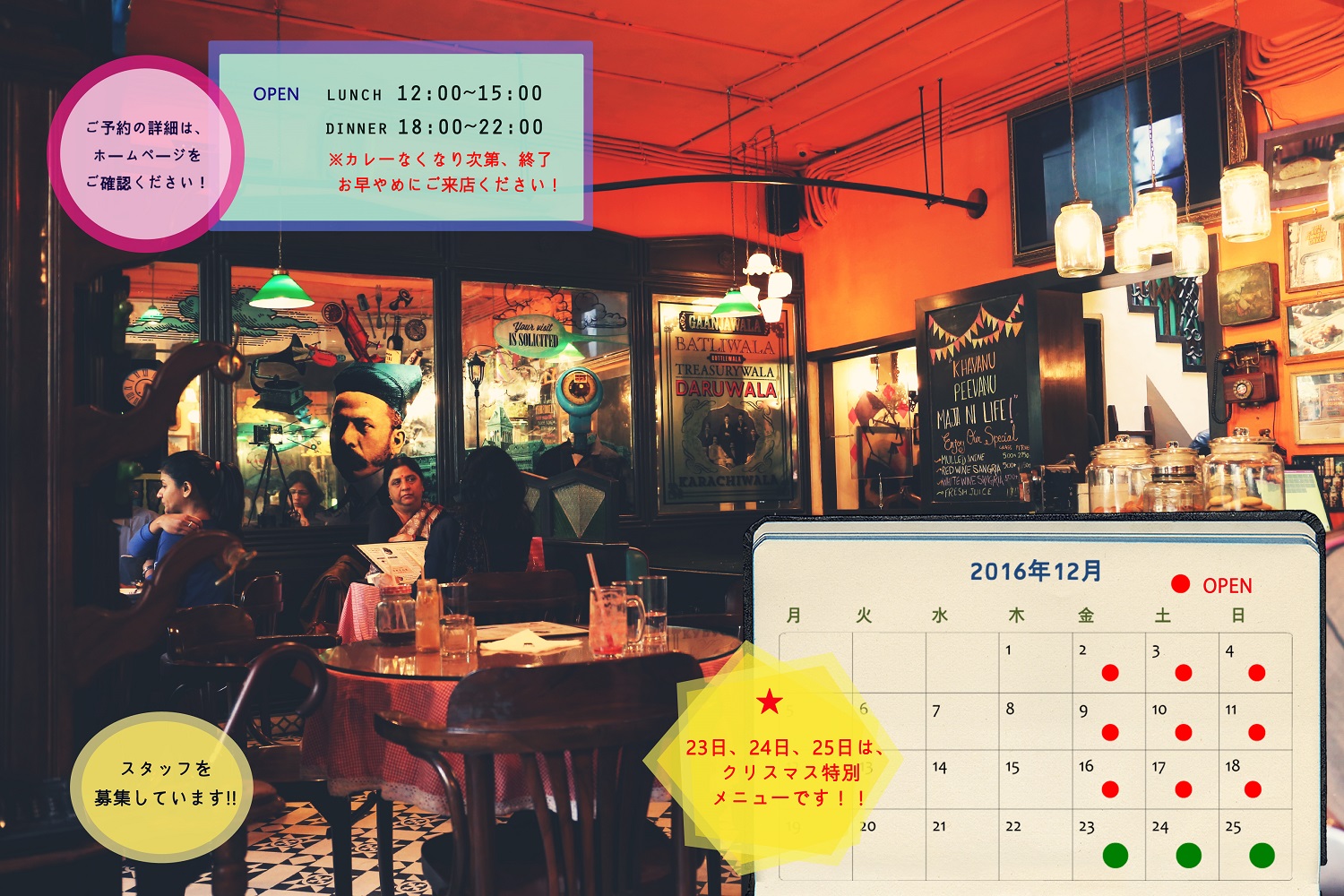 ★ ディナータイムは、基本的にご予約制です。