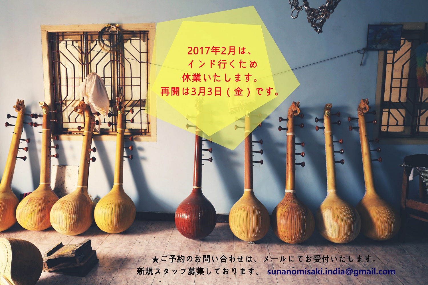 インドへ行くため休業いたします。