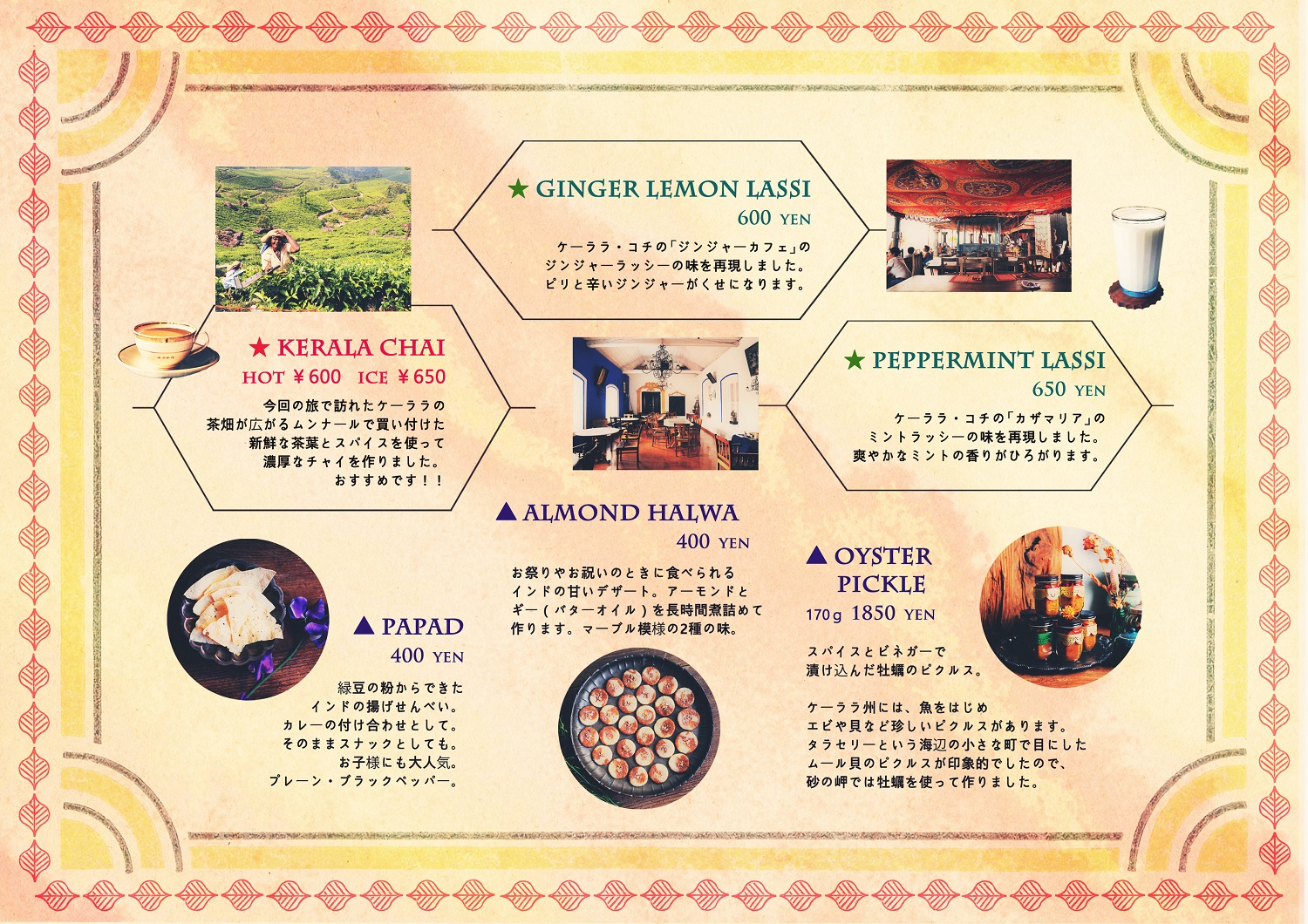南インド・ケララのミールスにしようと決め、試作にかかり、