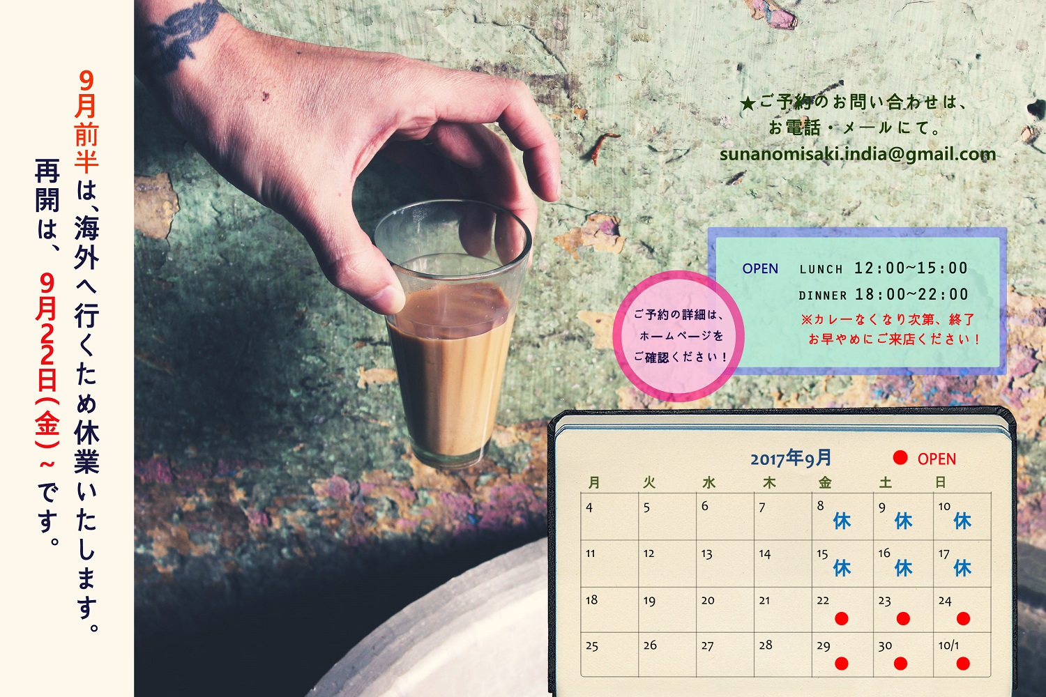 ※ 9月22日まで海外に行くため、営業はお休みいたします。