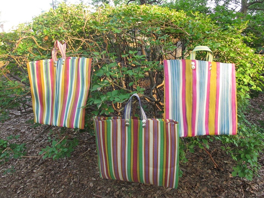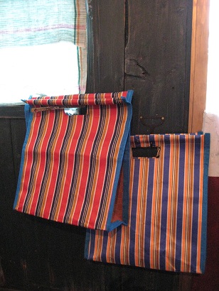 作られるオリジナルバッグをなぜか路上でおばちゃんが売ってました。