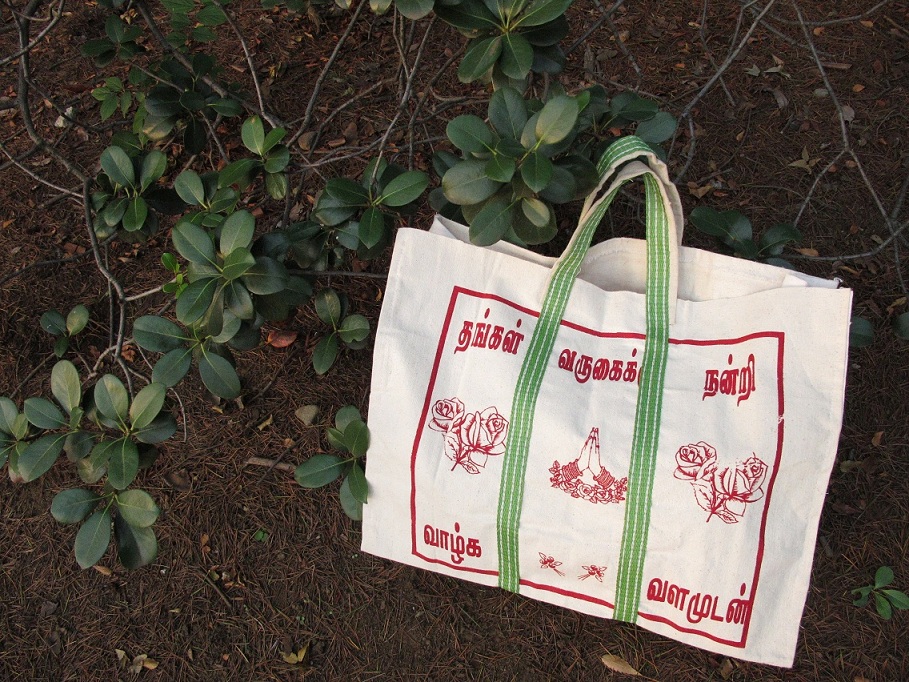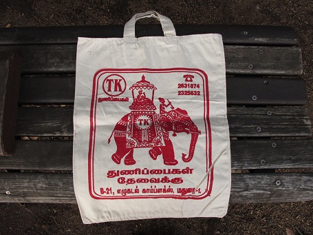 タミル語全開のバッグ。