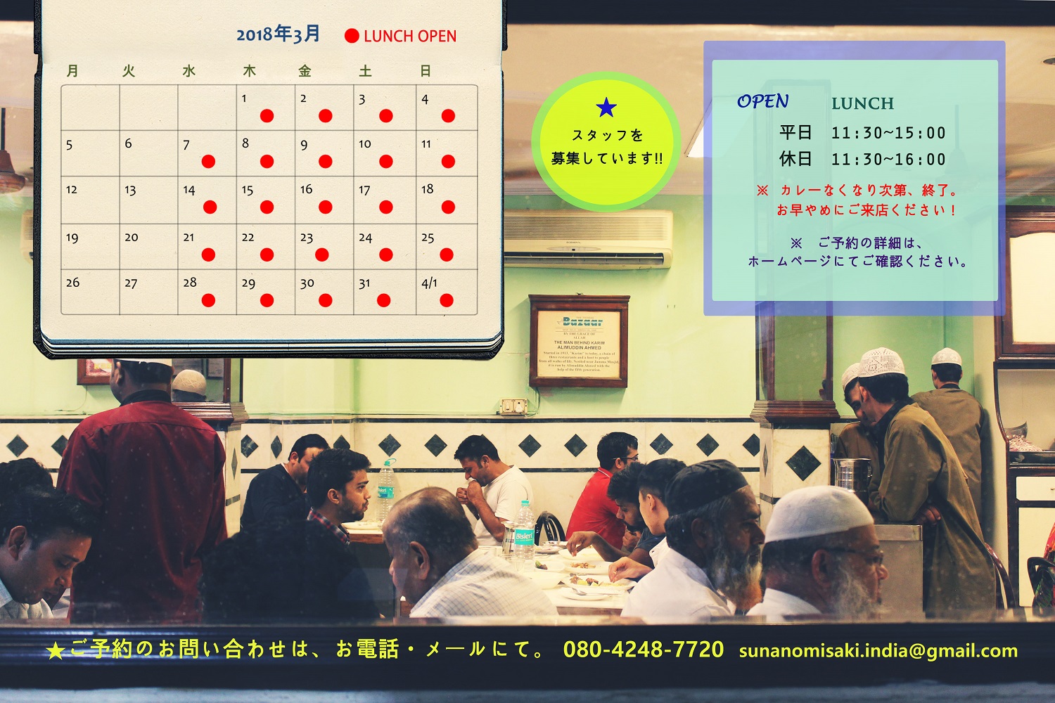 インド研修へ行きますので、お店は長期休業いたします。