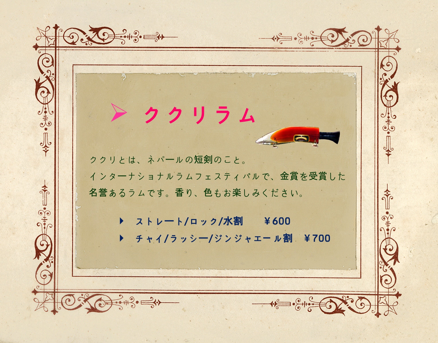 ◆ ネパール産 最高級のラム酒 「ククリラム」