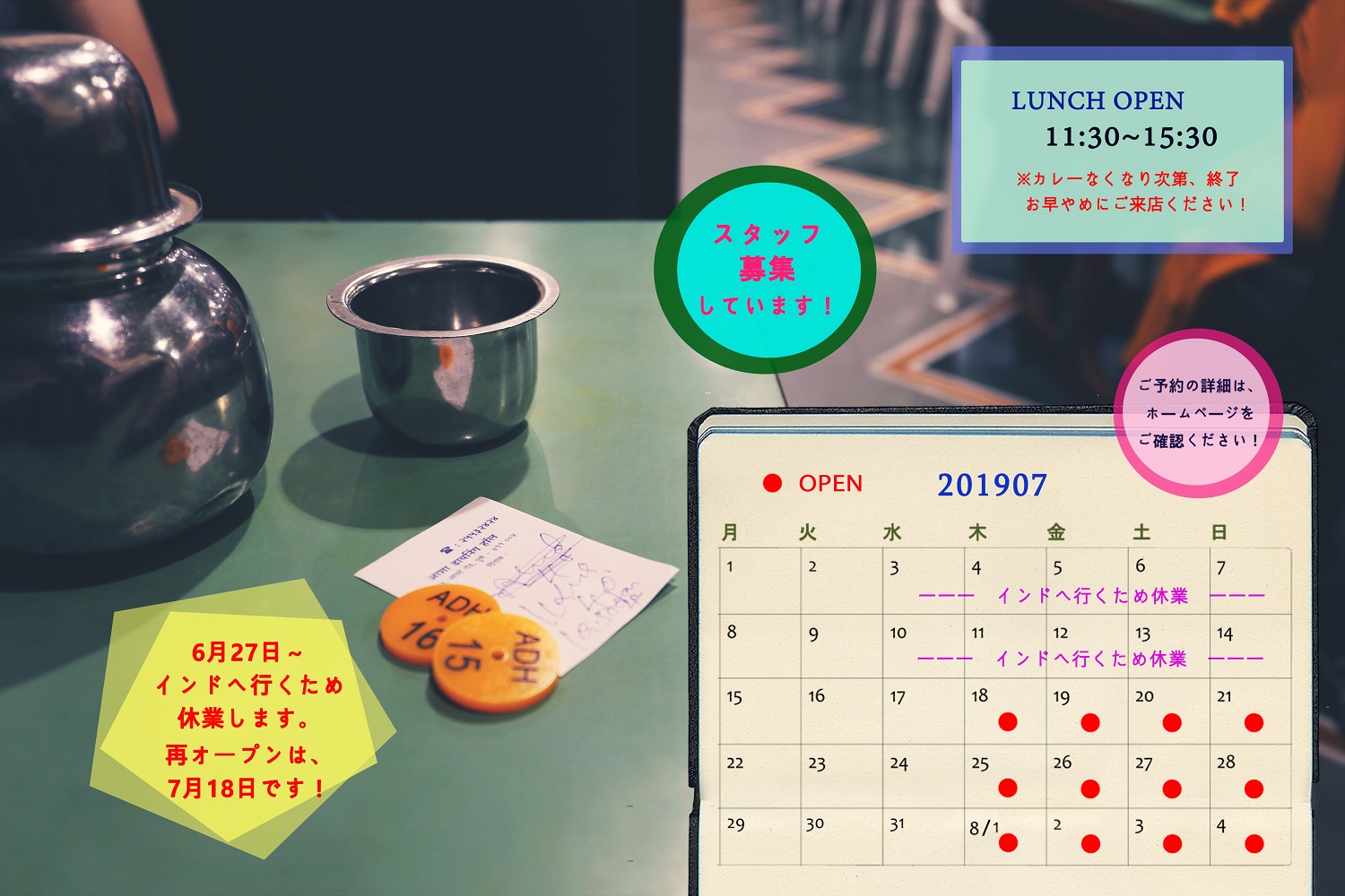 ◆2019年7月の営業日 (クリックすると大きくなります⇩)