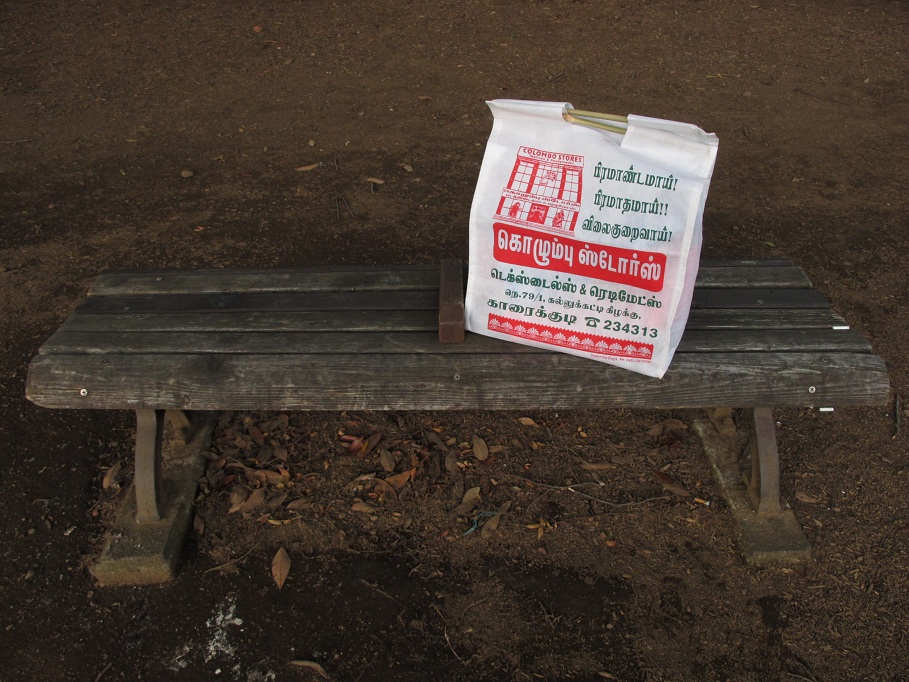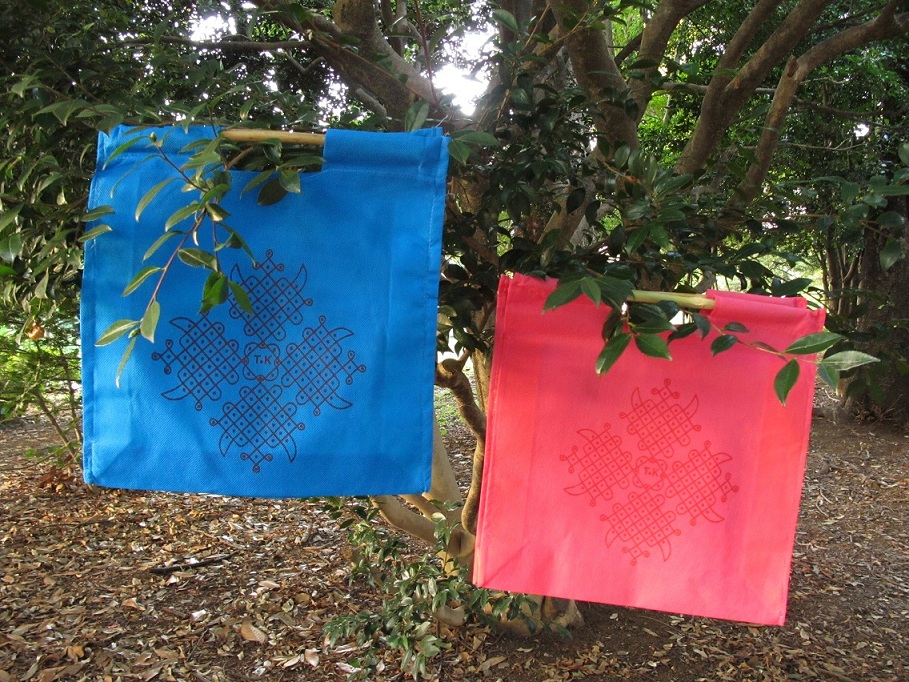 作られるオリジナルバッグをなぜか路上でおばちゃんが売ってました。