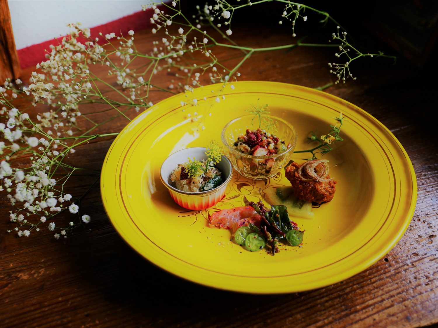 わたしちがインドで買ってきたアンティークのお皿を使用しています。