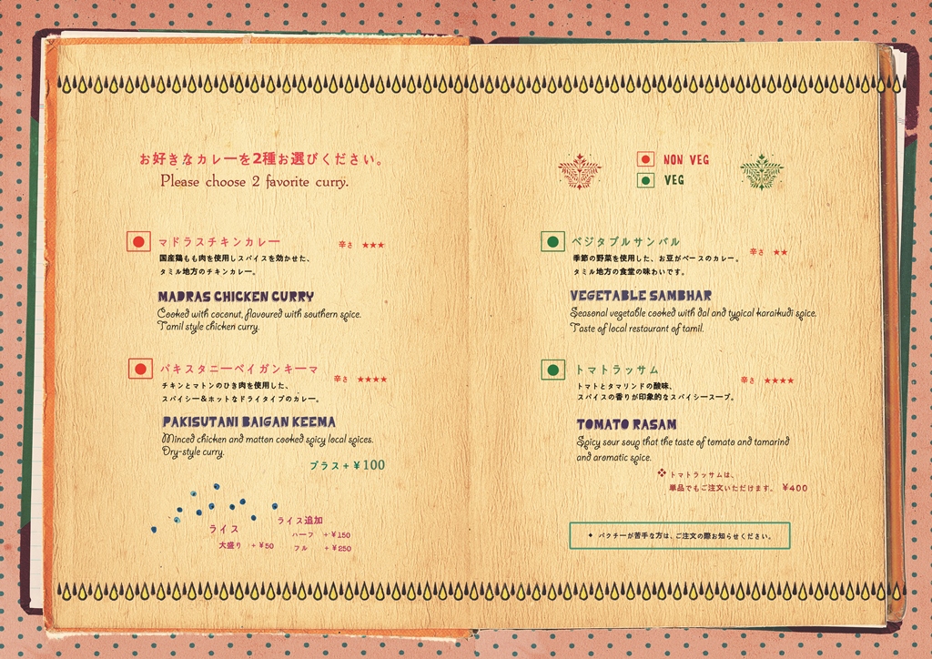 メニューはこちら。