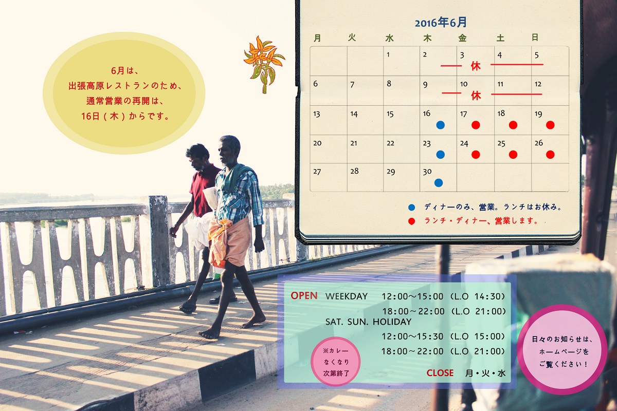 ※ 5月26~6月12日は、出張高原レストランのため、お休みいたします。
