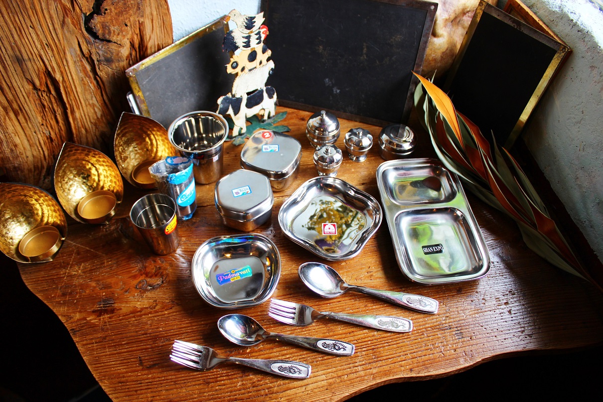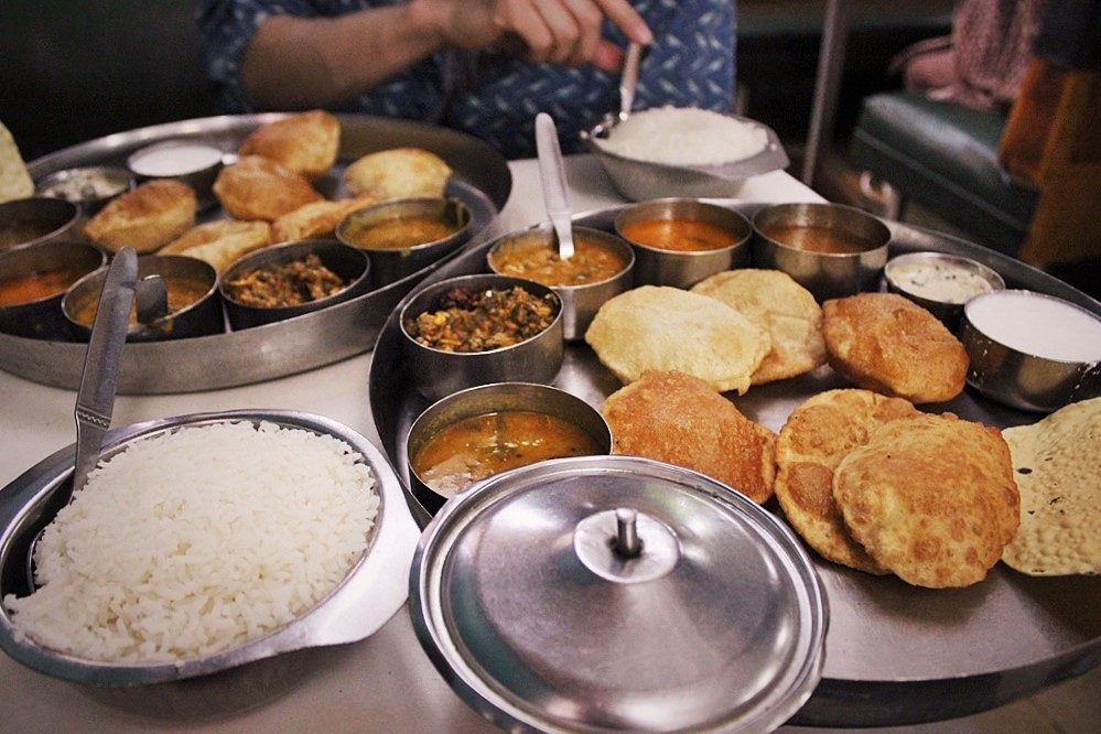 カレーだけでなく、魚料理や揚げ物のお皿、